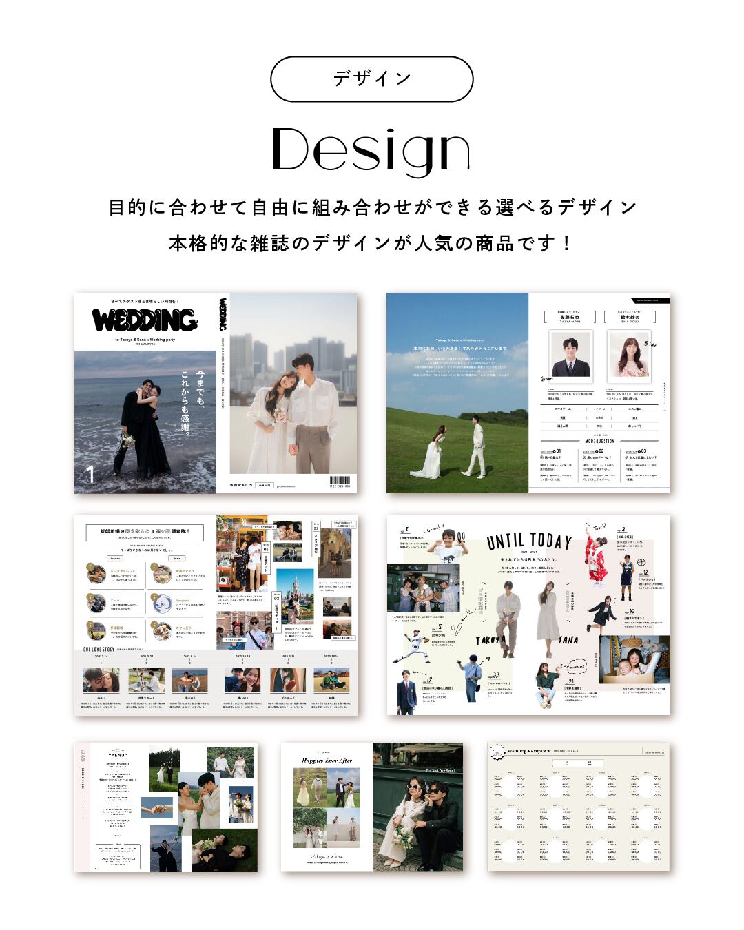 目的に合わせて自由に組み合わせができる選べるデザインです。本格的な雑誌のデザインが人気の商品です!