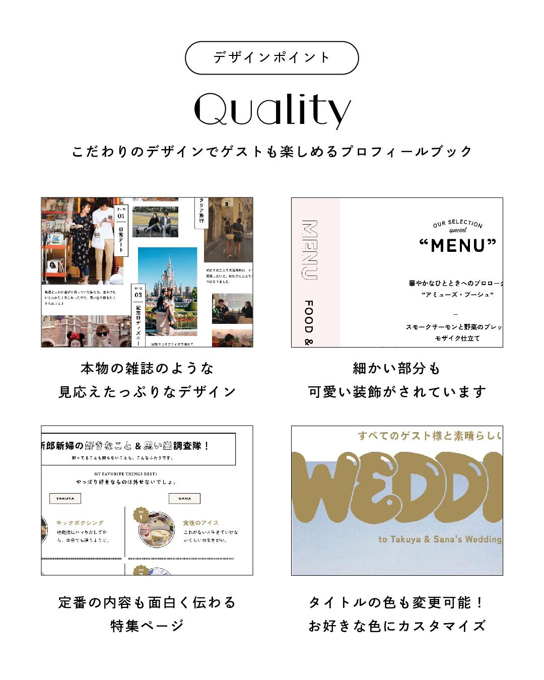 こだわりのデザインでゲストも楽しめるプロフィールブックです。