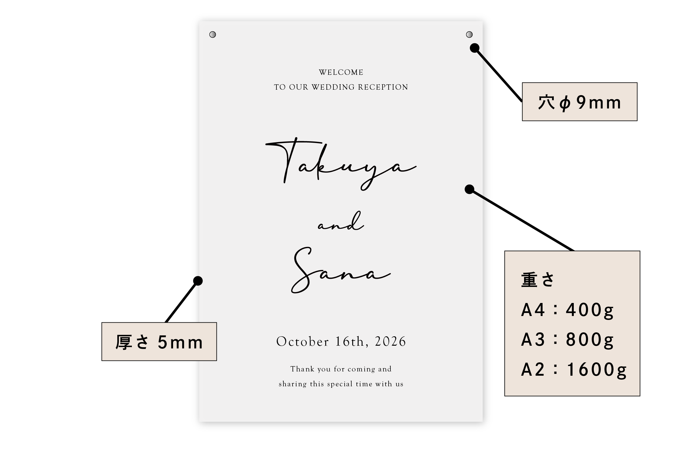 アクリルウェルカムボード | 選べるフォント・カラー | tb5