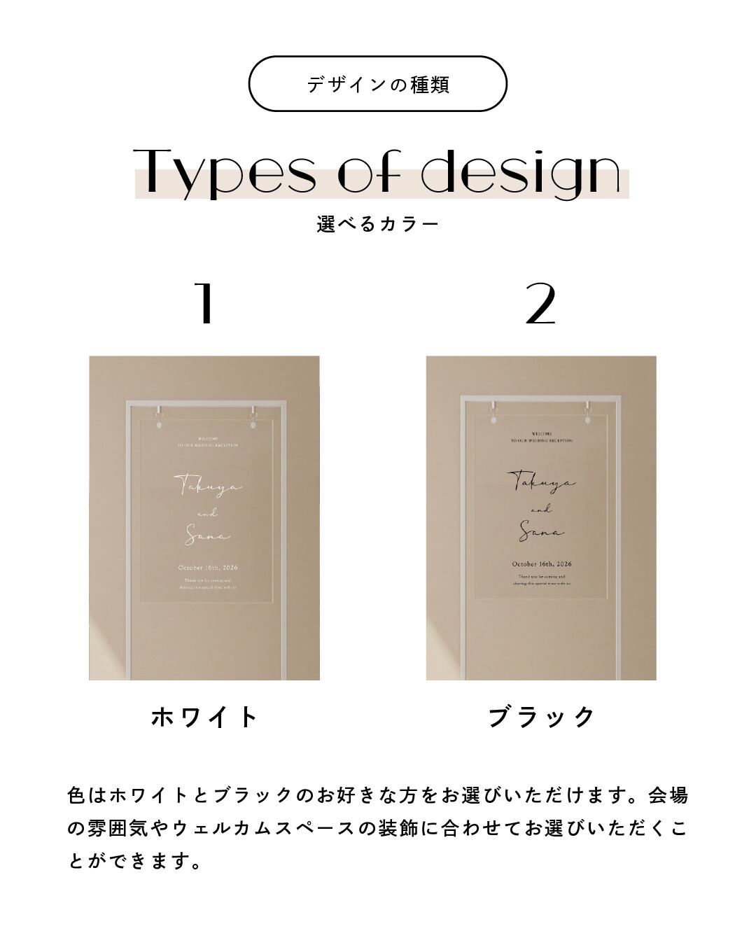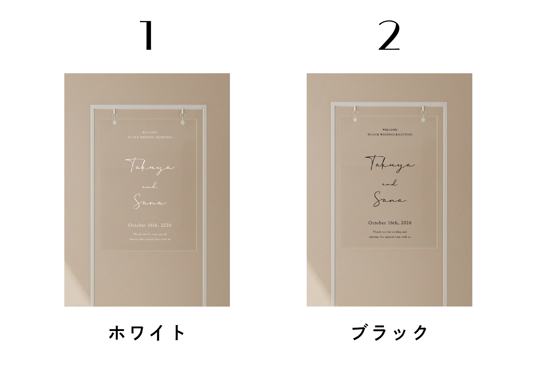 色はホワイトとブラックのお好きな方をお選びいただけます。会場の雰囲気やウェルカムスペースの装飾に合わせてお選びいただくことができます。