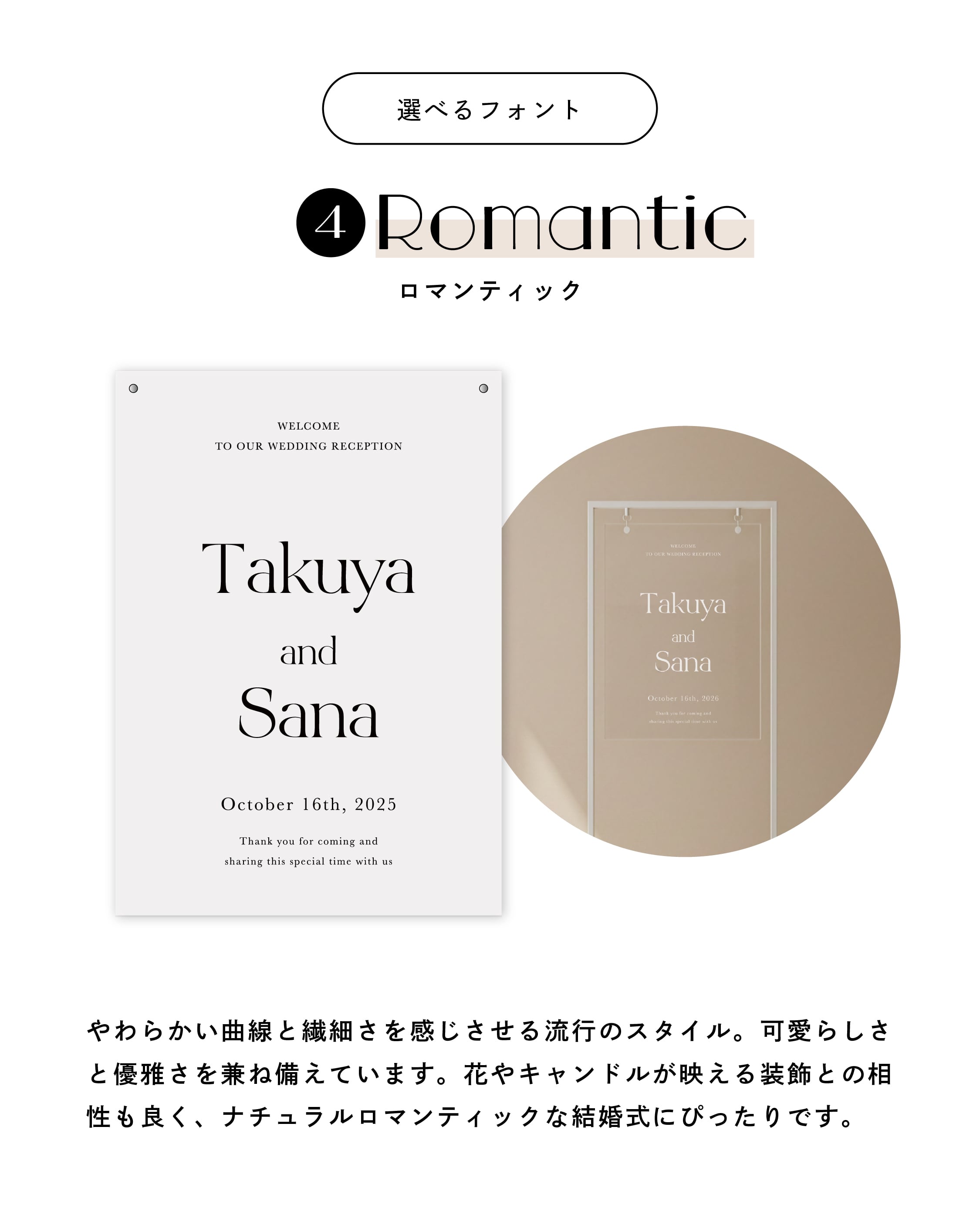 結婚式のイメージにあったお好きなフォントがお選びいただけます。