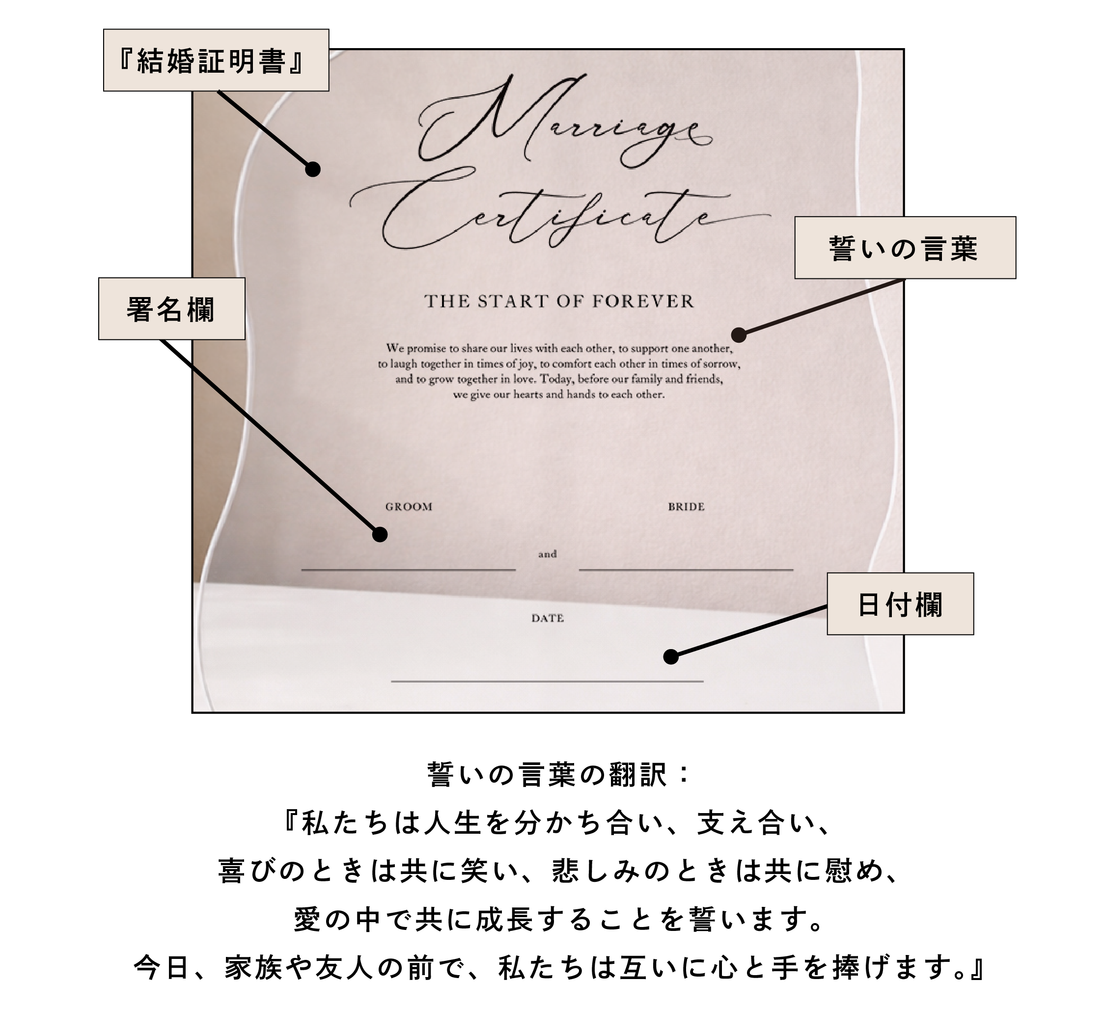 今日、家族や友人の前で、私たちは互いに心と手を捧げます。