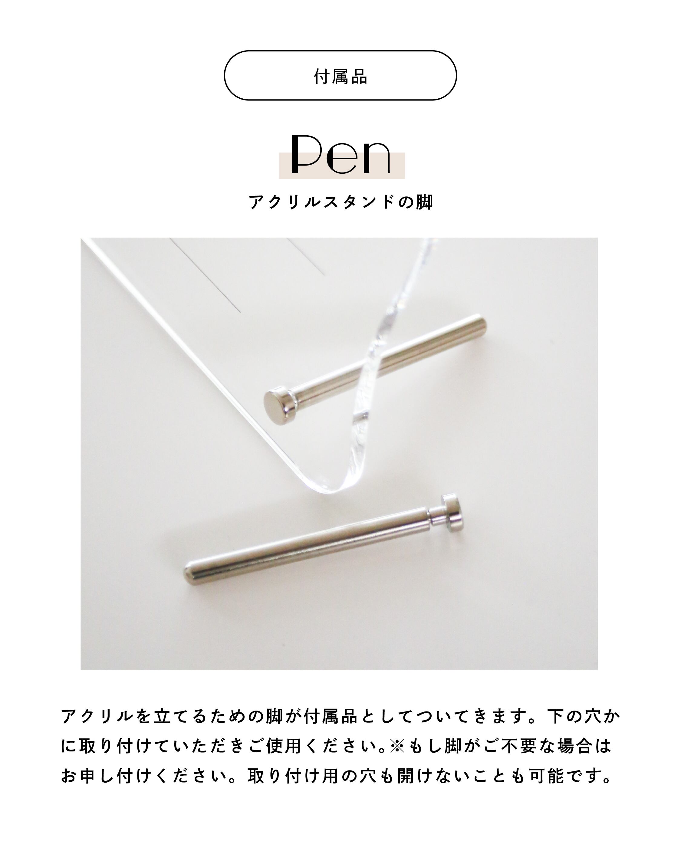 アクリルを立てるための脚が付属品としてついてきます。下の穴に取り付けていただきご使用ください。