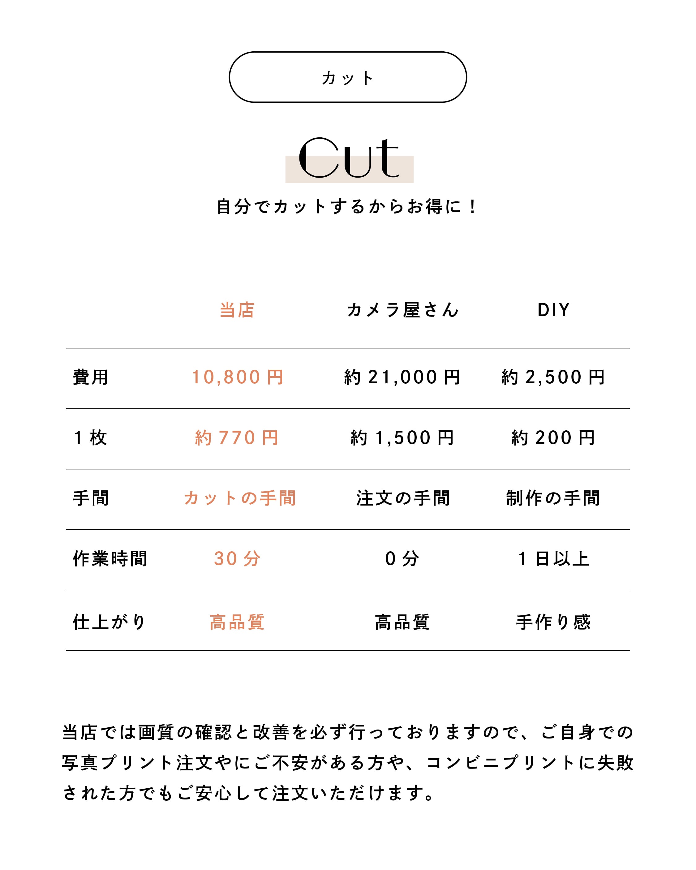 DIYよりも簡単で高クオリティで、カメラ屋さんで頼むよりも価格を抑えることができます。