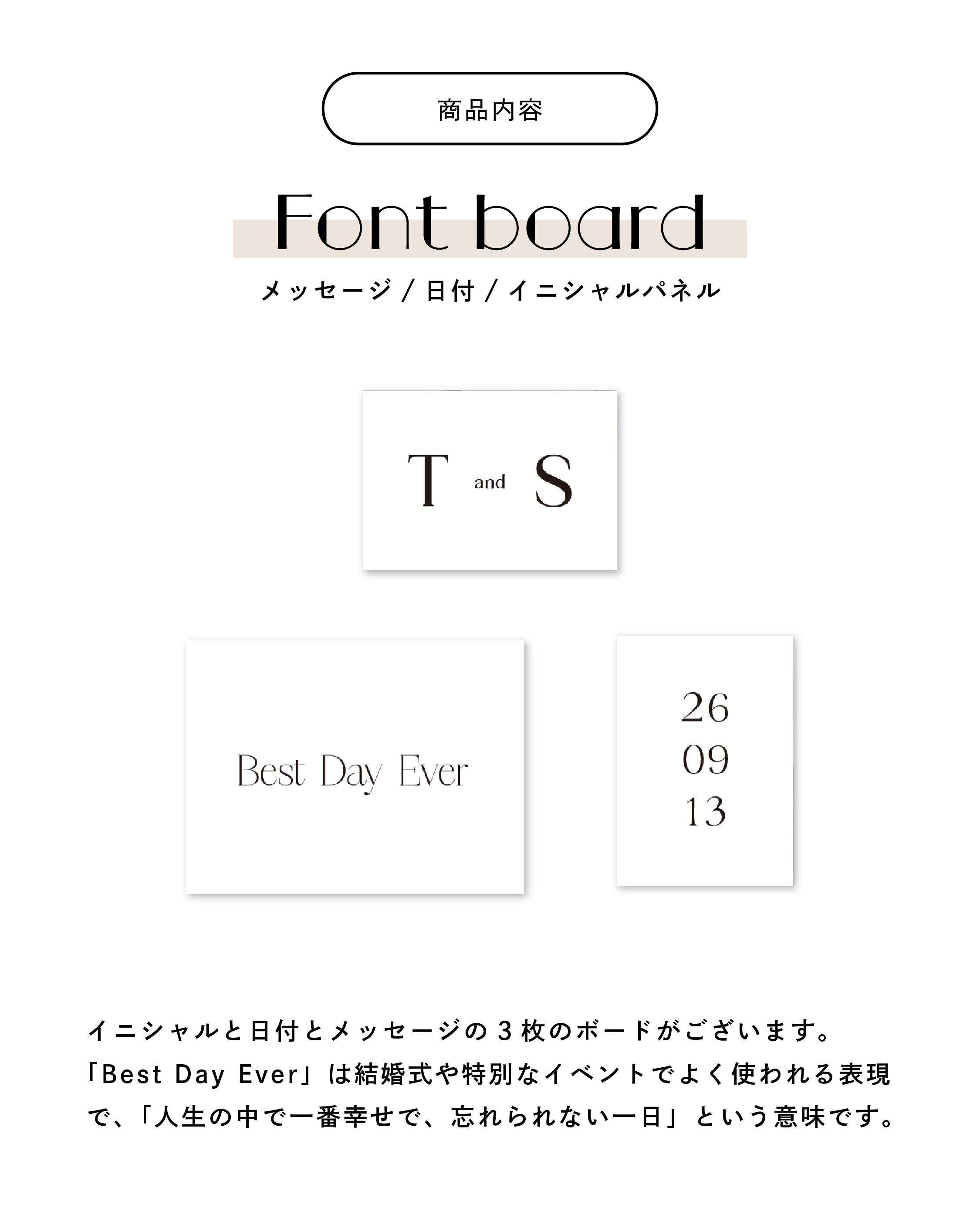 イニシャルと日付とメッセージの3枚のボードがございます。