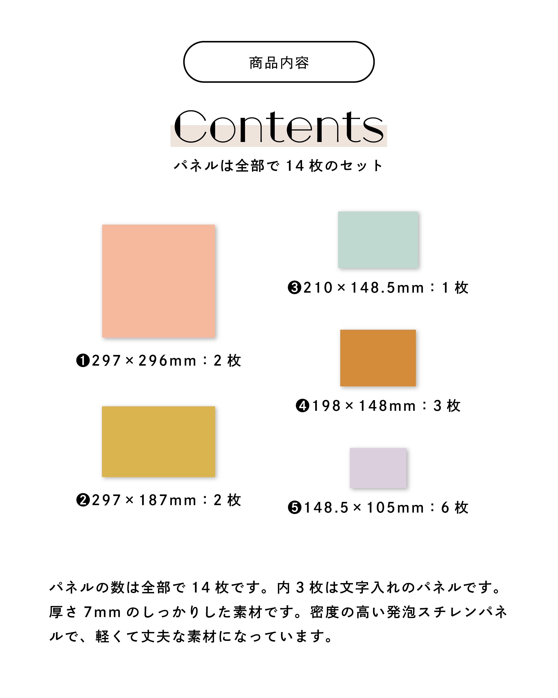 パネルの数は全部で14枚です。内3枚は文字入れのパネルです。